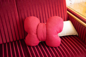 ランプや鏡など、細かな部分にもミニーのモチーフがあり、客室で過ごしていると新たな発見をできるかも。クッションも、ミニーのリボンがモチーフです。