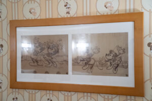 壁紙には色々なポーズをしたミニーが描かれていて、短編時代のモノクロアートも飾られています。