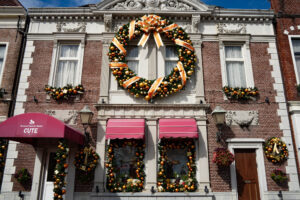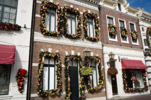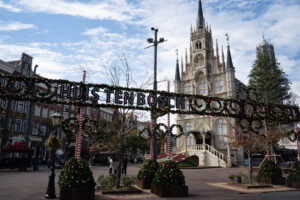 ホテルアムステルダムからマイ・ミッフィーブティックにかけて、エリア全体にリースやクリスマスの装飾が施されています。