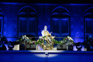 中央インフォメーション前に場所を移し、ステージも2階建てになり、より広いステージで豪華にクリスマスソングを届けます。