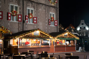 クリスマスマーケットも規模を拡大し、多くのフードやドリンクを販売。そして、マーケットの中央には新たなクリスマスツリー「グランド・シャンデリアツリー」が登場しました。