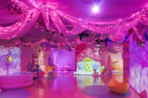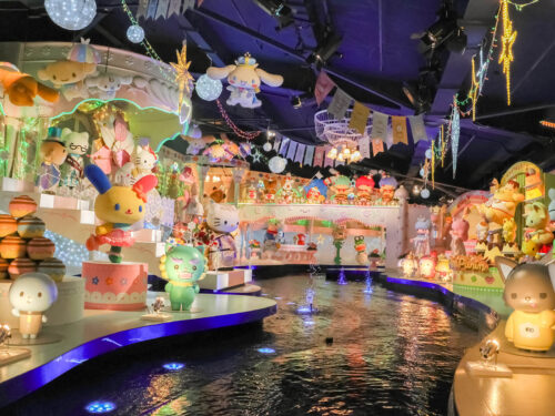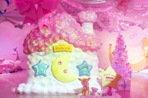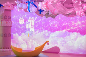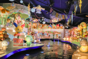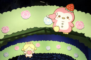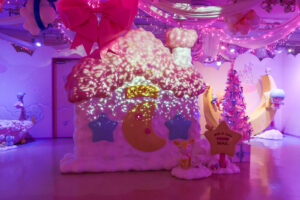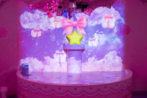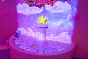 NAKED, INC.協力のもと、幻想的なイルミネーションとプロジェクションマッピングが広がり、ふたりの生まれ故郷「ゆめ星雲」の世界を体験できます。クリスマスイブに誕生したキキ&ララの50周年を祝う演出により、天井や壁面に投影された流れ星や星雲の動きが楽しめます。