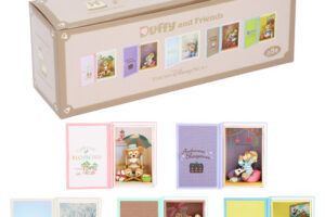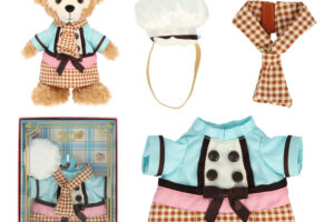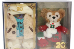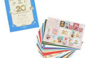 アルバムに見立てた本型のケースの中に、「ダッフィーデビュー(2005年)」や「ミッキーとダッフィーのスプリングヴォヤッジ(2012年)」など、過去のプログラムを思い返せるフィギュア(1,800円)と20周年デザインのトランクを抱えながらこちらを見ている愛らしいダッフィーのぬいぐるみ(5,500円)も発売します。