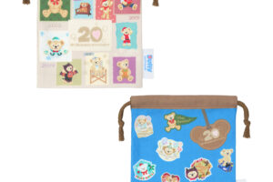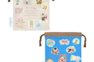 過去のプログラムで描かれたダッフィーのアートをモチーフにしたBOX入りのポストカードセット(3,900円)や、トランク型のケースに入ったステッカーセット(2,600円)、そしてきんちゃくセット(2,500円)が登場します。