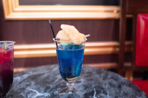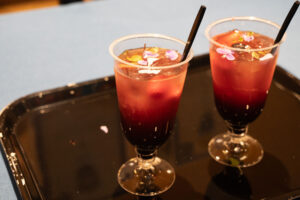 7,800円のチケットにはドリンク1杯がついており、席に着く前に受け取ります。ドリンクは、住人をテーマにした4種類。うち1種はアルコールドリンクです。