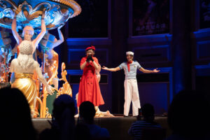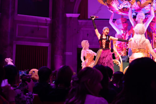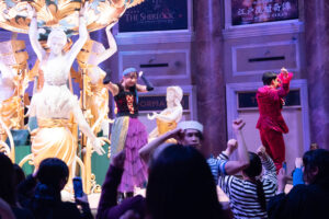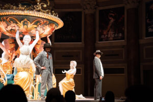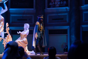 「事件簿」で繰り広げられたイマーシブショーを、テーマパークらしいステージショーにアレンジ。次々と住人たちの物語が描かれ、住人同士の交流も見られます。