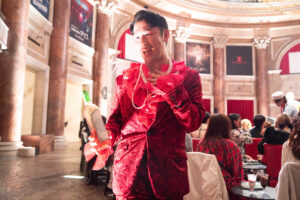 ステージは、フォルテヴィータ事件簿からフィナーレで使用しているゴールデンプラザ。観客定員は150人で、椅子とテーブルが並べられています。