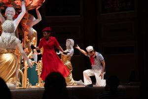 他演目の終了後、平日の19:30から公演。普段はロビーとして利用されている広場に椅子が並べられ、毎晩ステージが現れます。