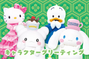 年末の12月26日(金)〜31日(水)の期間は、ハローキティ・シナモロール・はなまるおばけ・あひるのペックルのキャラクターグリーティングを実施。