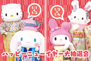 1月1日(木)から4日(日)までの期間、キティキャッスル前で豪華賞品が当たるハッピーニューイヤー大抽選会(1,000円)を実施します。
