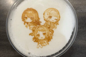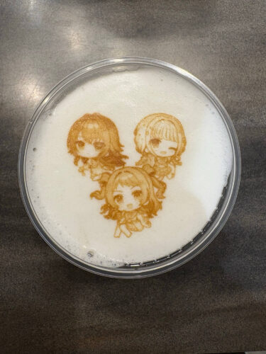アイドルたちのミニキャライラストがプリントされたオリジナルドリンクです。イラストは全5種あり、選んで注文できます。