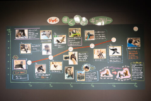 飼育スタッフの手作り感あふれる展示で、ジョイの成長が見られます。