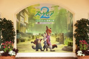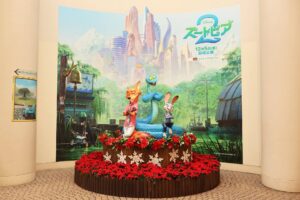 また、イクスピアリでは館内の各所でズートピアの世界観を楽しむことができ、シネマイクスピアリの入口サインにある「IKSPIARI」の文字が、「ZOOTOPIARI」に変わっています。