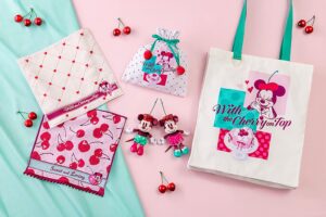 ミッキーへ贈るハートのケーキにさくらんぼを飾るミニーがデザインされた、大人かわいいグッズが発売されます。