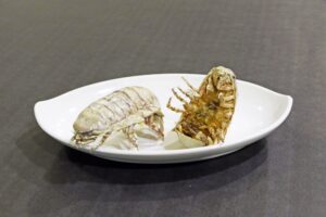 深海生物であるタカアシガニやオオグソクムシを実際に食べることができるイベントを期間限定で開催します。カニ味噌がたっぷりつまったタカアシガニや、見た目からは想像がつかない食感のオオグソクムシはそのままの姿で食べられます。