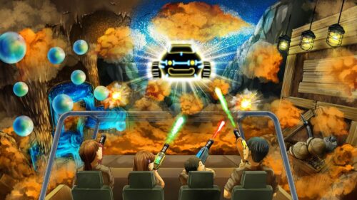 「バットのパワークリスタルハント」がリニューアル。スモッグが広がる洞窟を特殊なレーザーガンで浄化しながら探索を進める、体験型シューティングアトラクションです。