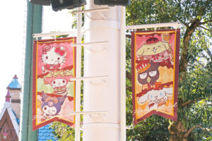 ハーモニービレッジのフラッグやウォールアートにはスイーツモチーフがふんだんにあしらわれ、各所にフォトスポットが設けられ、園全体にイベントの世界観が広がります。