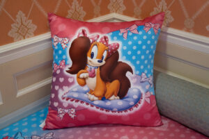チーズのムースにはダークチェリー入り。ポルカドットやフリルのようなメレンゲが、ミニーのピンクでポップな世界を表現しています。