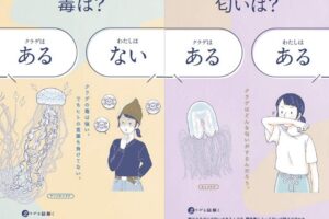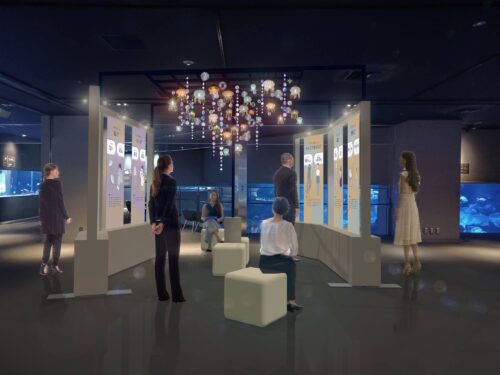 イベントでは、ふわふわと漂う姿で多くの方を魅了するクラゲの特徴を、あえて見た目が全く違うヒトの体と比べることで、クラゲをより身近に感じられる展示パネルを設置します。