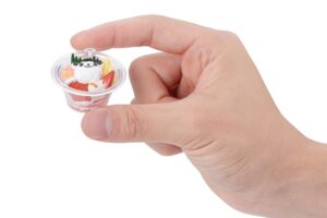 ラインアップは「カフェコムサ『パンダのショートケーキ』」、「北辰鮨『パンダミルフィーユ』」、「たごさく『ぎゅぎゅっとパンダおこわいなり』 」、「アルサスローレン『パンダパン』 」、「小布施堂『栗あんパンダまんじゅう』」の全5種類で、スイーツから惣菜まで、パンダをモチーフにあしらった愛らしさ全開のフードをそのままぎゅっと小さく再現しています。