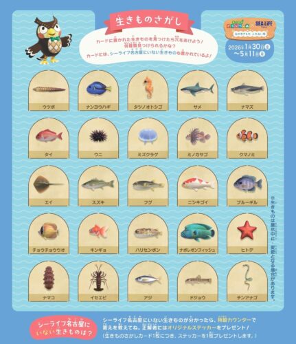 名古屋シーライフ水族館は、あつまれ どうぶつの森 × 名古屋シーライフ水族館 海の生きもの ふれあい展を、2026年1月30日(金)~5月11日(月)の期間、開催します。
