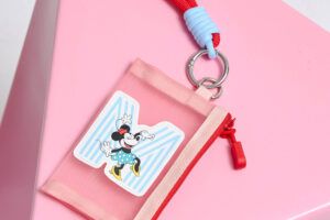 ミッキー、ミニー、ドナルド、グーフィーをプリントしたビニール製のコインケースに、アクリルプレートを組み合わせたMIXチャーム。
