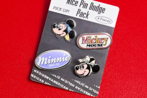 ミッキー×ミニー、ドナルド×デイジーのそれぞれ異なるデザインの4種のモチーフが入ったアソートピンズセット。