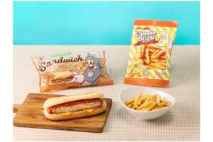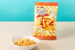 チーズになったトムたちをデザインしたユニークなパッケージのチーズスナック「トムとジェリー チーズ味カリカリスティック」(320円)は、濃厚なチーズフレーバーとカリカリ食感が楽しめます。