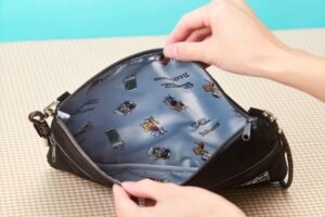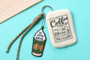 サコッシュ(3,620円)やキャンバススクエアトート(3,920円)などのグッズは、エプロンを付けたキャラクターたちがコーヒーを運ぶ様子や、コーヒータイムを楽しむ姿をデザインしています。