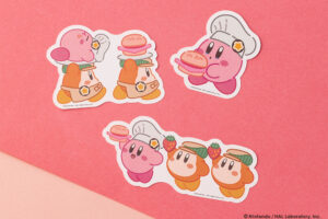 ステッカーには、カフェの店員姿のカービィをデザインしています。