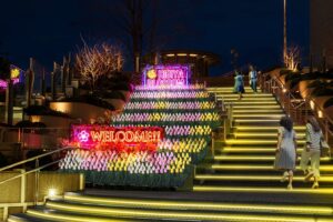 ドームに隣接する大階段エリアは、劇中の舞台マンチキンランドのチューリップ畑をイメージ。物語の世界を彷彿とさせるフォトスポットになります。
