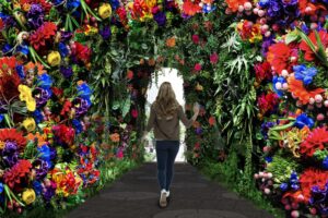 「HIBIYA BLOSSOM 2026」のメインコンテンツとなる「ウィキッド 永遠の約束 presents Flower Dome」は、15,000本を超えるアーティフィシャルフラワーを使用し、映画『ウィキッド 永遠の約束』の世界観をサステナブルな花材で表現した、アーティスティックなフラワードームです。