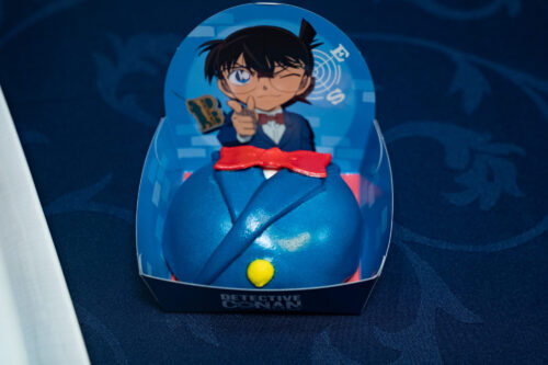 キャップ(4,700円)には、コナンのぬいぐるみが乗っています。コナンは蝶ネクタイなど、細かな部分までしっかり表現したデザインです。