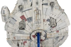 目玉となる展示品の一つは、インダストリアル・ライト&マジック(ILM)社が1976~77年に制作した全長約1.5メートルの撮影用ミニチュアを精緻に再現した、ミュージアム品質の大型ミレニアム・ファルコン号レプリカです。ILM伝説のモデルショップと同様の技法を用いて丹念に制作され、『スター・ウォーズ』(1977年)公開当時の姿(『帝国の逆襲』制作時に施された改修以前の状態)を忠実に再現しています。