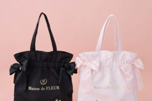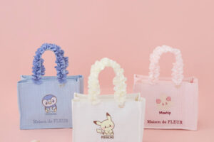 Maison de FLEURのブランドを象徴するダブルリボントートバッグ(6,900円)には、ポケピースのなかまたちを箔プリントで表現。存在感のあるリボンとアートが調和し、本コレクションならではの大人可愛いデザインに仕上げました。