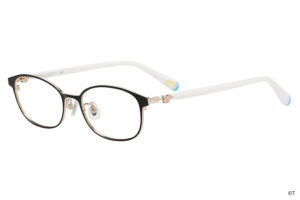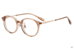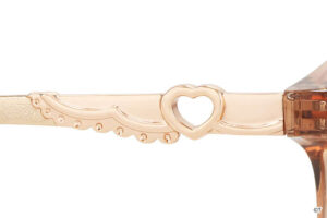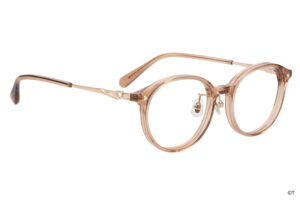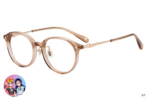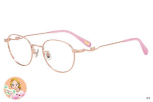 揺れ動くリボンを表現した繊細なつるのデザインや、ピンクのカラーリングなど、シャイニールミナスの衣装の魅力をメガネに落とし込みました。丸みのあるボストン型で、顔周りの印象を柔らかく。つる先には、ポルンとルルンが仲良くかくれんぼ。