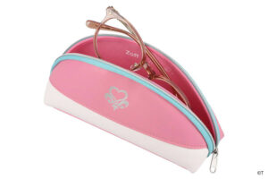 オリジナルケースとメガネ拭きのほか、「プレミアムメガネポーチ」も付属します。ふたりの絆をデザインに込めたオリジナルポーチには、『ふたりはプリキュア』のプリキュアマークがあしらわれています。