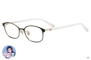 『ふたりはプリキュア』のキュアブラック・キュアホワイト。ふたりの絆をデザインに落とし込んだ特別なメガネ。プレミアムメガネポーチ付き。左右のつるは、よく見るとデザインが異なるアシンメトリーなデザイン。キュアブラック、キュアホワイト、それぞれの衣装に使われているレースをあしらいました。つる先には、ふたりを象徴するリボンを添えて。