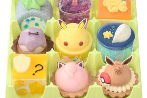 ピカチュウは10まんボルトのようにパチパチ弾けるキャンディー入りバナナケーキに、イーブイはキャラメルチョコホイップクリームで毛並みを表現したタルトに、ゲンガーはあやしいオーラをももとブドウ風味のゼリーでデザイン。