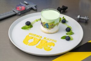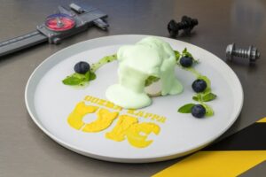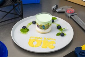 サリーとマイクが入ることになった落ちこぼればかりのクラブ「OK(ウーズマ・カッパ)」をイメージしたデザートメニュー。透明の筒を外すとケーキが“落ちこぼれ”ます。