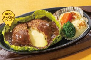 30周年記念デザインのホイルを、ピカチュウの「しっぽ型ホイルカッター」で切り開く体験型メニューです。熱々のミニチーズINハンバーグから溢れるチーズのコクと、自分で開けるワクワク感を同時に楽しめます。