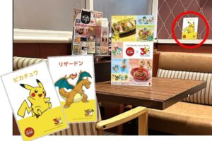 座席には、30種類以上のポケモンたちが描かれた座席カード、卓上のミニクイズが設置されます。