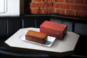 重要文化財の赤レンガの質感を再現するため、専用型でどっしりと密な生地に焼き上げています。コクのある塩キャラメルの風味とシャリシャリしたザラメの食感が楽しめるしっとりした味わいが特徴のパウンドケーキです。