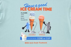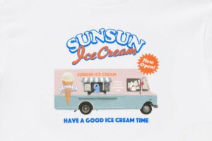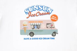 グラフィックTシャツは、アイスクリームショップワゴンやメニュー表などをデザインしています。