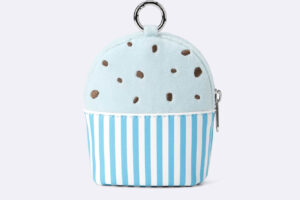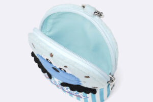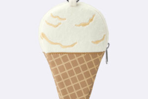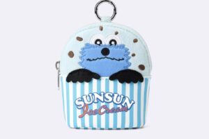 スンスンがチョコミントアイスから、ノンノンがバニラアイスから顔を出すデザインのミニポーチは、カラビナ付きでバッグなどに取り付けることができます。