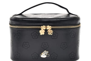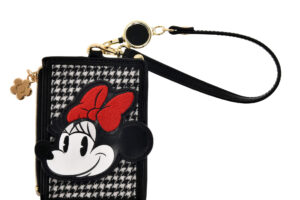 レザー風ポーチ(3,700円)やバニティポーチ(4,800円)は、デイジーモチーフを型押しした総柄のポーチに、千鳥格子柄のリボンを着けたミニーをオン。内生地にも千鳥格子柄を採用し、パターンミックスの秋冬らしいアイテムに仕上がっています。マチやポケットを備えた、見た目も実用性も兼ね備えた優秀アイテムです。