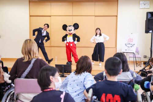 ミッキーの突然の訪問に驚きと嬉しさを隠し切れないこどもたちは、立ち上がって手を振ったり、笑顔を見せたり、歓声に包まれました。