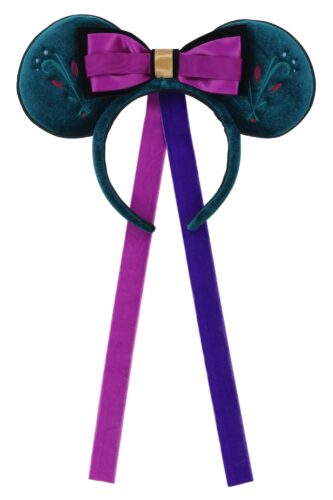 耳の部分には、『アナと雪の女王』で使われているローズマリングの模様をデザインしています。リボンは紫色。