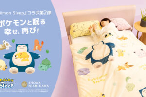 ポケモンのスマホアプリ「ポケモンスリープ」と、昭和西川がコラボ。アプリのテーマに合わせて、忙しい日々の中、眠りの時間にそっと寄り添う存在として生まれたコラボが人気を博したことから第2弾を展開。