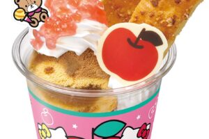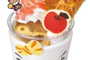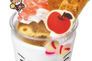 アップルパイサンデー(1,370円)は、ハローキティの好きな“ママが作ったアップルパイ”をイメージしたサンデー。
